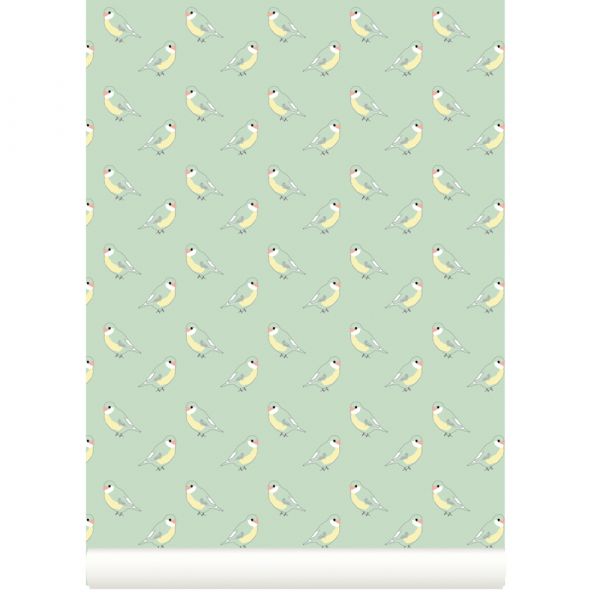 Bring a touch of freshness and poetry to your walls with the Blue Mint Birds wallpaper. Its delicate bird pattern on a mint pastel background creates a soft and soothing atmosphere, perfect for a child's bedroom or a playroom.
