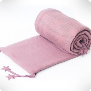 Il s'adapte au lit bébé en 60cm x 120cm et 70cm x 140cm. Ouatiné et capitonné en jersey suédé bio, il possède une face imprimée "étoiles", une face unie et des liens en coton.